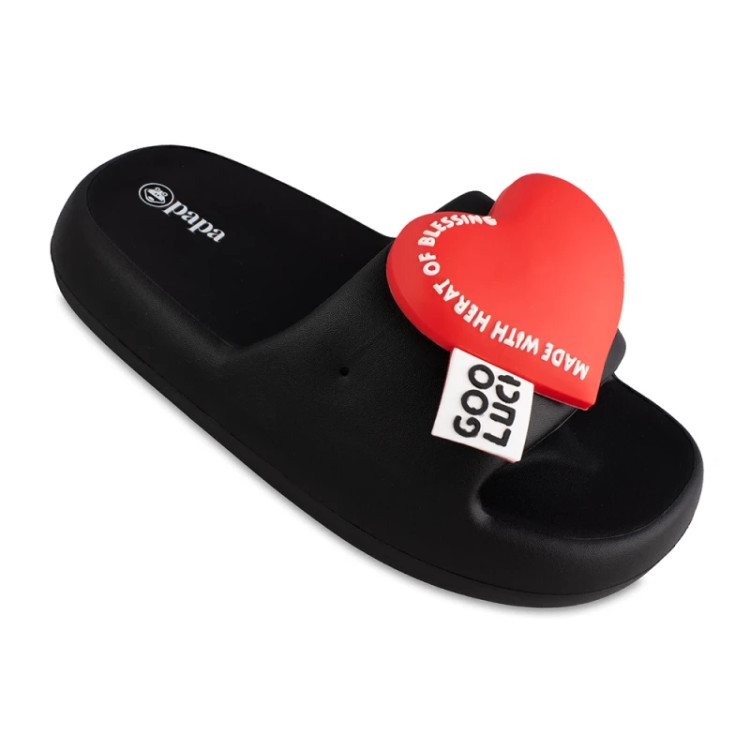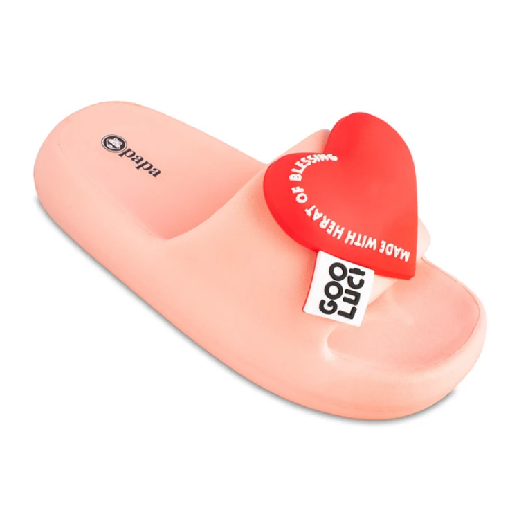 دمپایی قلبی زنانه با یه استیکر بزرگ و برجسته و جنس سیلیکونی که برای روفرشی و استفاده روزمره بسیار مناسب است.